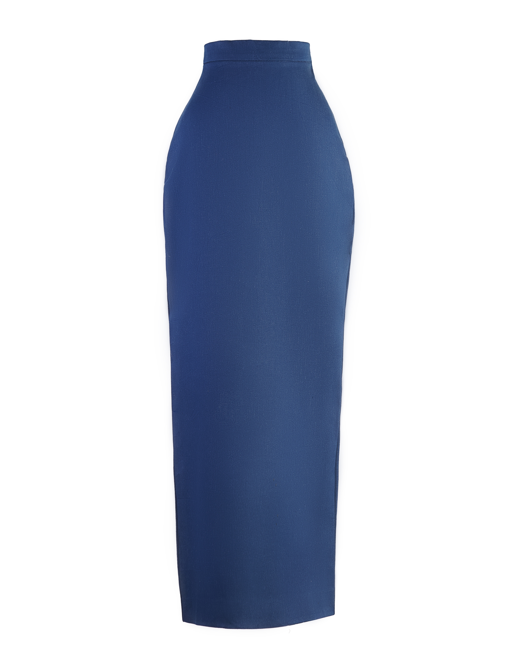 A cowl neck cotton asymmetric top paired with a pencil denim skirt