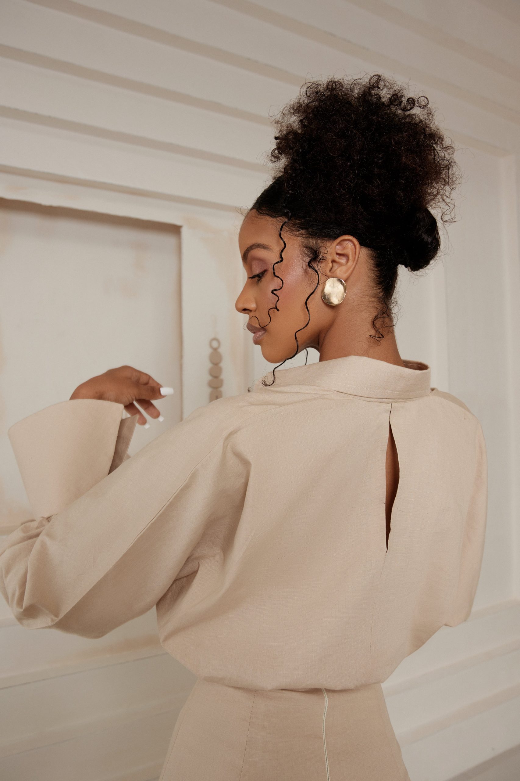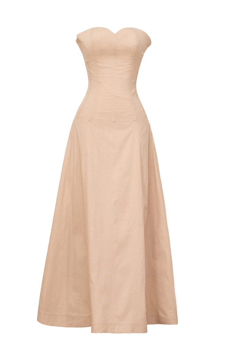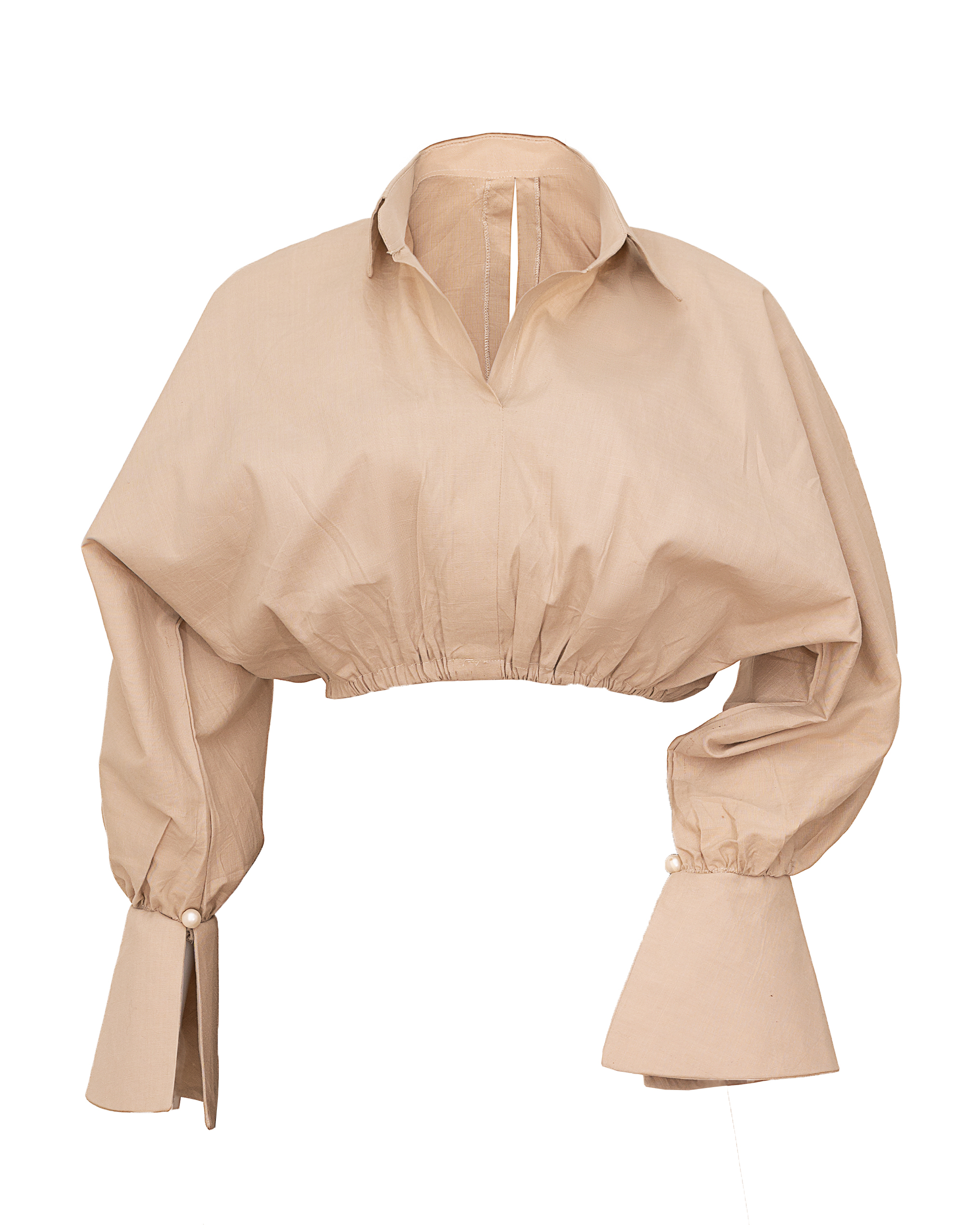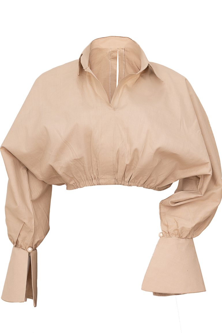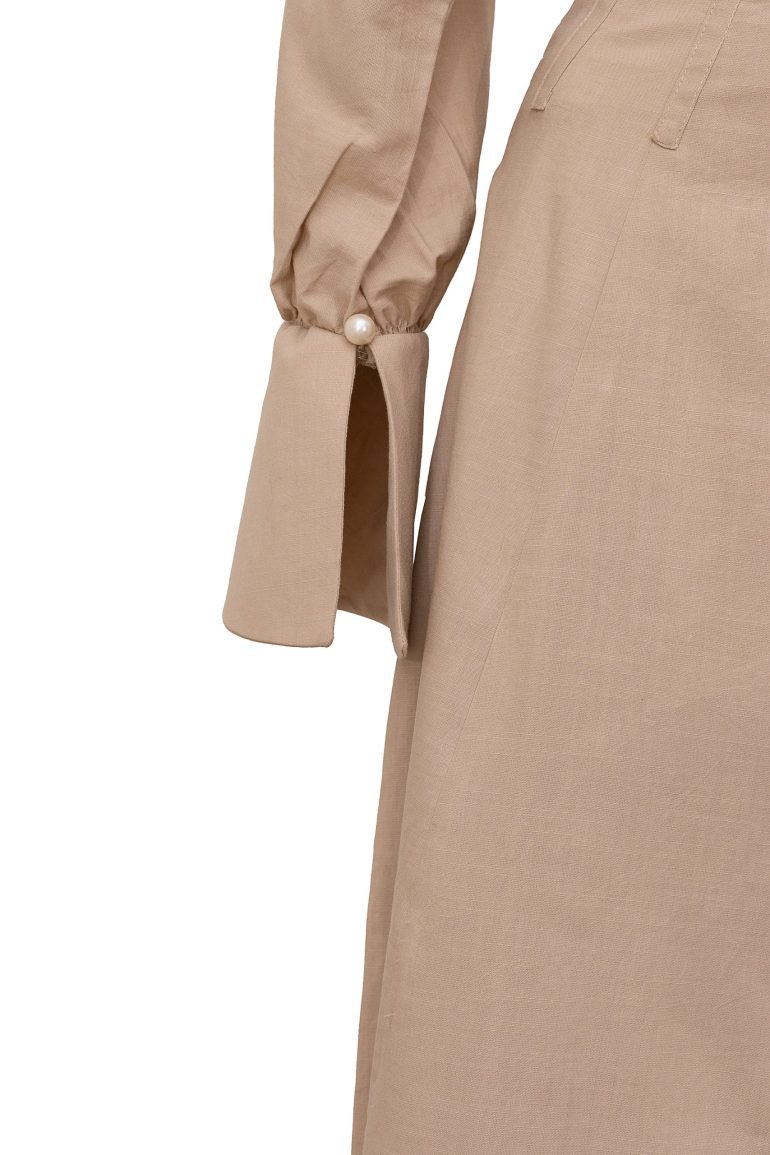 A rich linen two piece with pearl detailing on the sleeve. A top and dress that can be worn together or separately