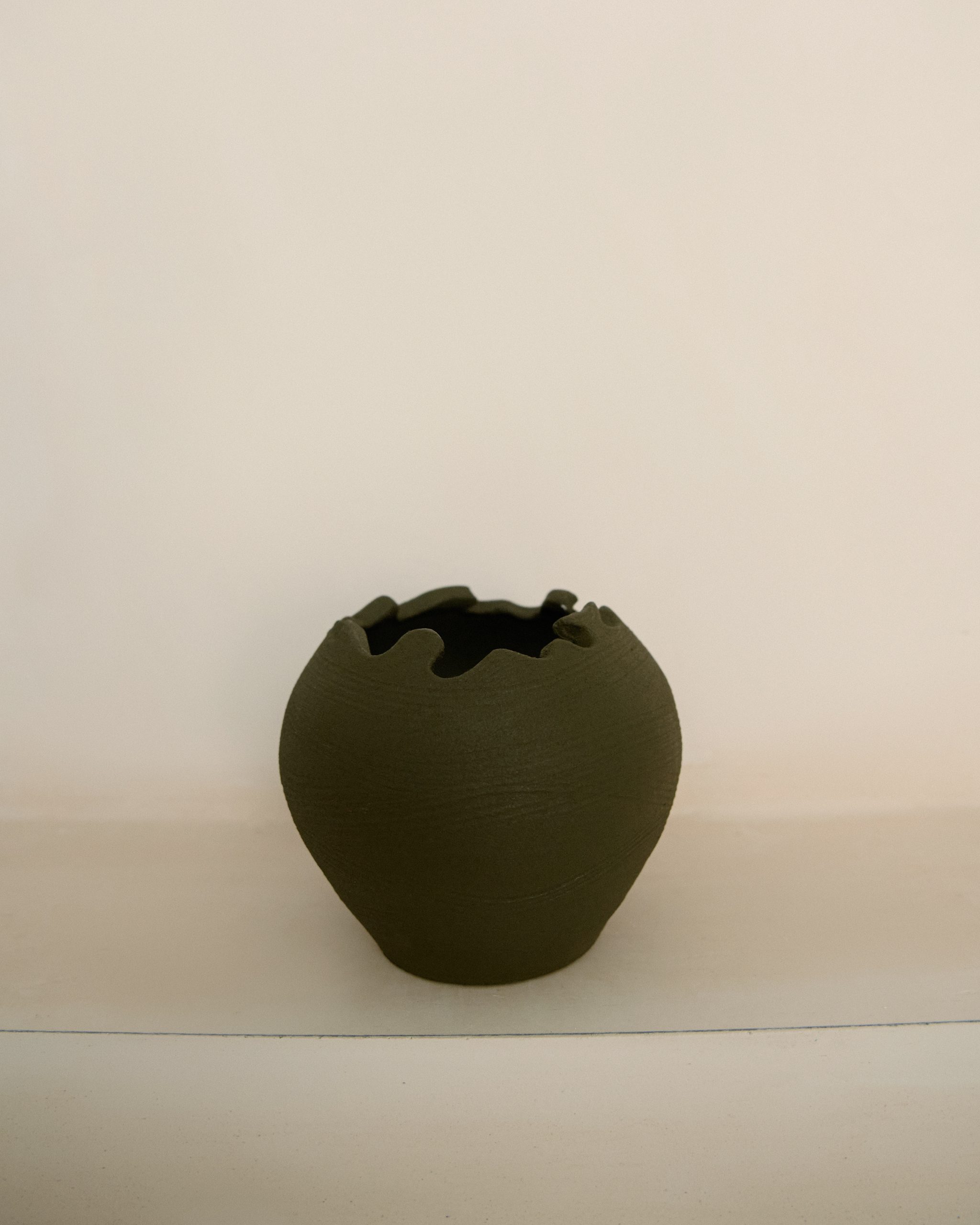 Texture-matte with curved lines running through the vase