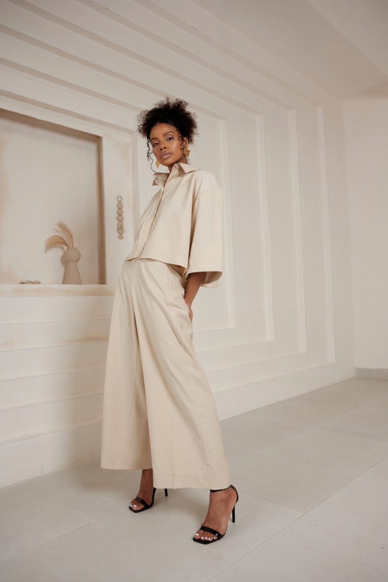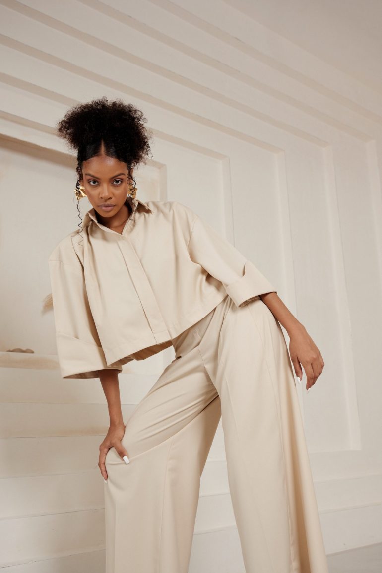 A high waisted culotte with an oversized cropped top made with a rich cashmere fabric