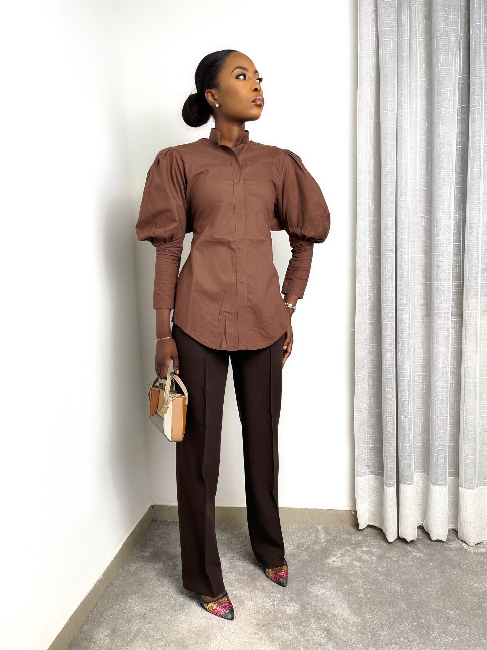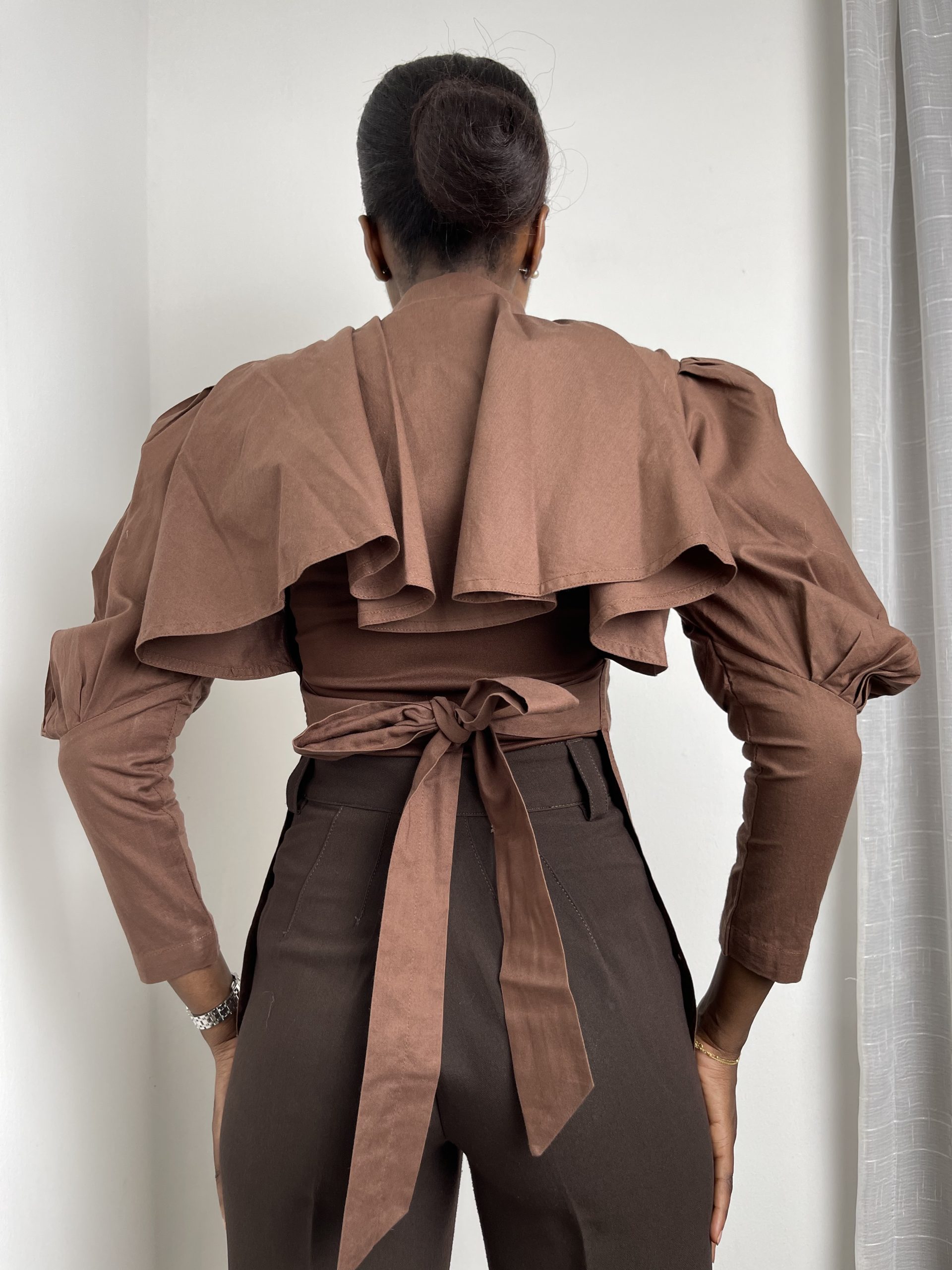 TOP-COTTON SHIRT WITH PUFFY SLEEVE AND AN OPEN BACK. IT ALSO COMES WITH A VEST