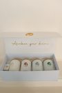 Box of 4 candles that contains all the four flavors of candles with a complimentary match box