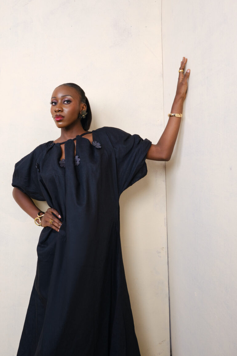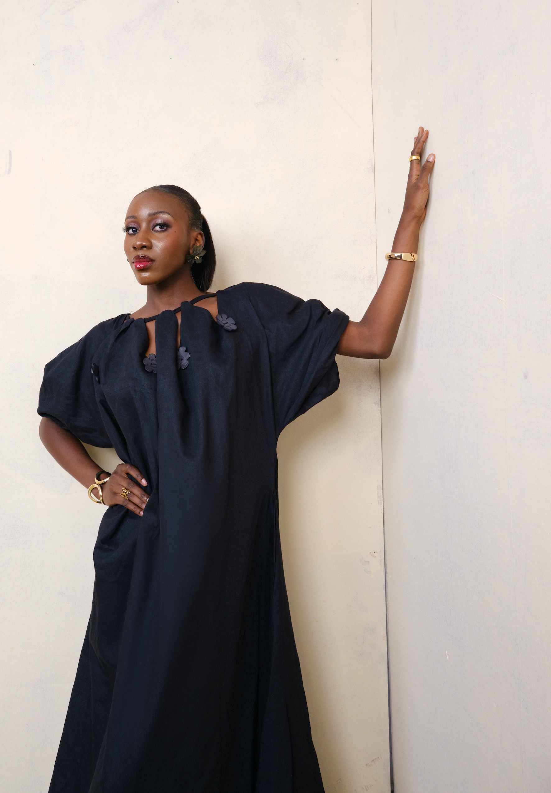 A rich linen two piece with pearl detailing on the sleeve. A top and dress that can be worn together or separately Care Label 30°C…