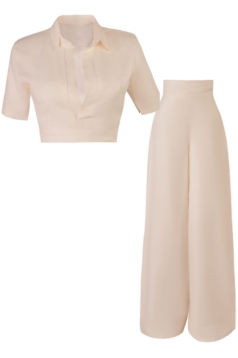 A high waisted culotte with an oversized cropped top made with a rich cashmere fabric Care Label Pants 30°C cool wash) 9 Do not bleach)…