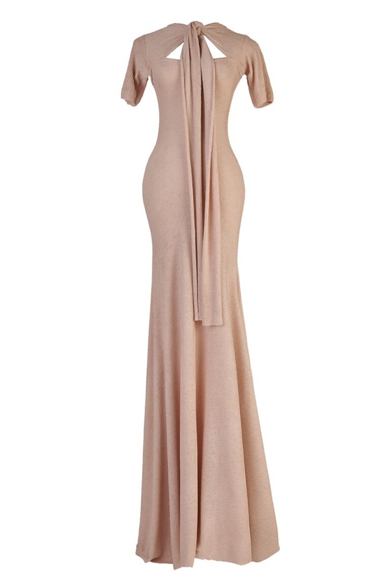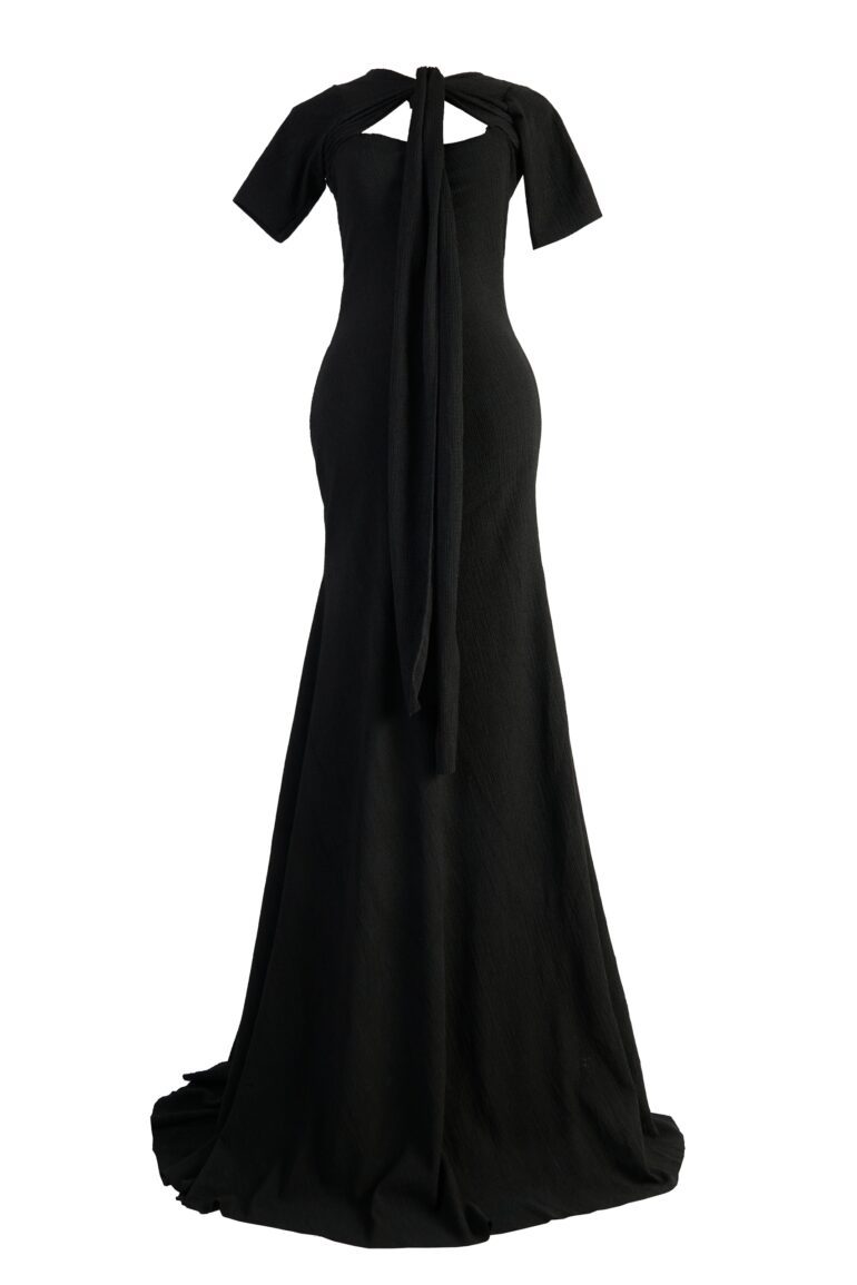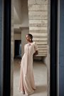 A TWO TONED DRESS. CREPE AT THE BACK AND PLEATED CHIFFON AT THE FRONT Care label 30°C cool wash 9 Do not bleach 1 Cool…
